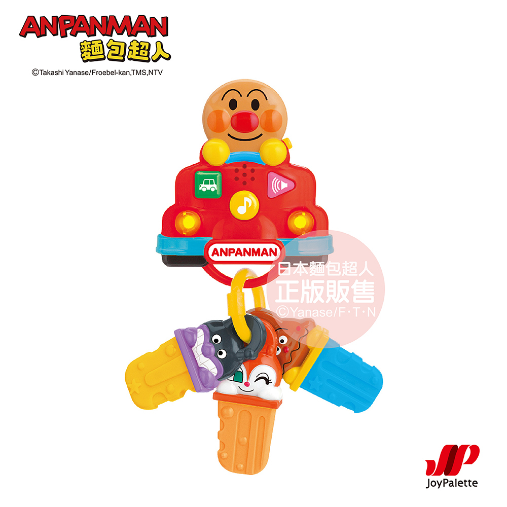 麵包超人車車造型設計,內附3種造型鑰匙玩具(細菌人、紅精靈、咖哩超人),