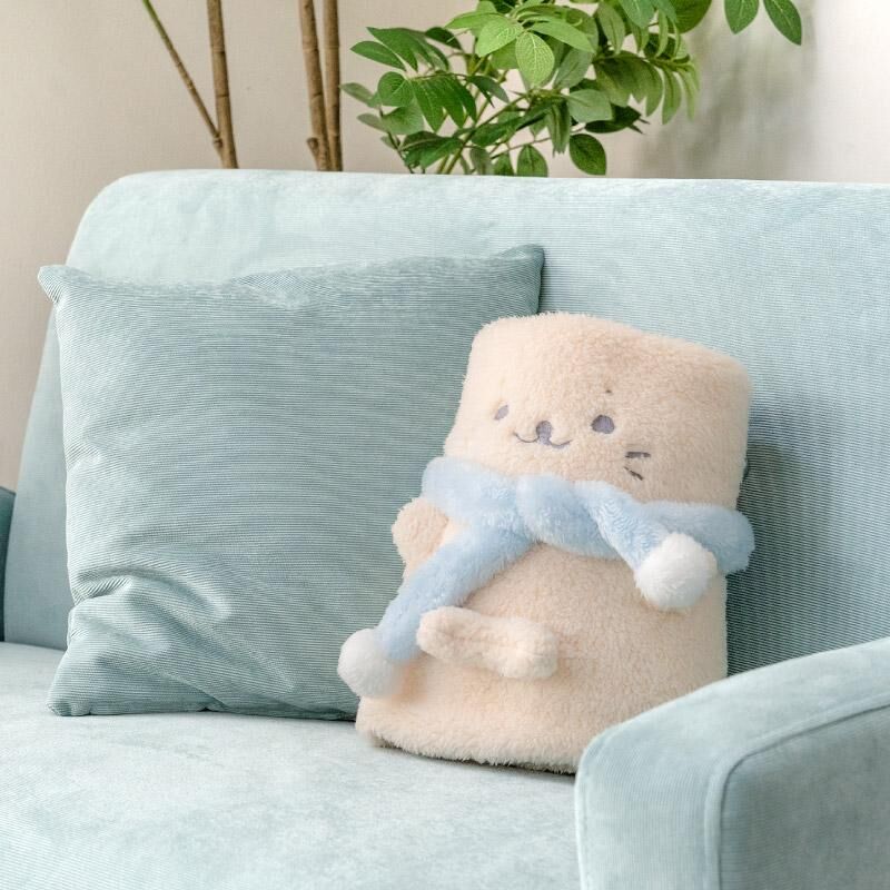 超萌的 しろたん 帶來「可愛毯&膝蓋毯二合一」設計,捲一捲就能變身小圍巾,攤開就是柔軟膝上毯,溫暖隨身帶著
